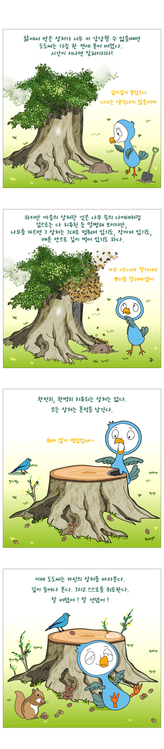 흉터는 남겠지만, 그 상처를 이겨내기 위해 들였던 노력이 새로운 열매가 되어 우리들 인생의 힘이 되어 줄거라 믿습니다.